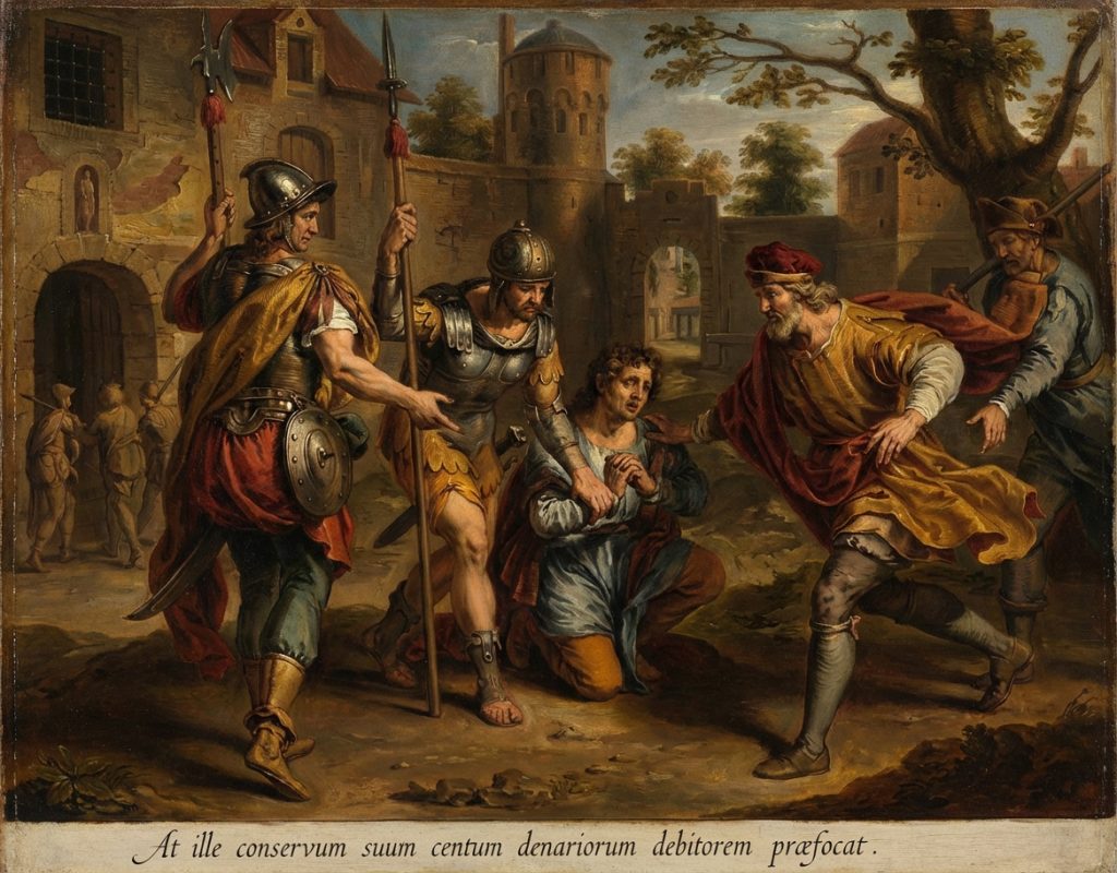 (Mattheüs 18:28) “At ille conservum suum centum denariorum debitorem præfocat.”